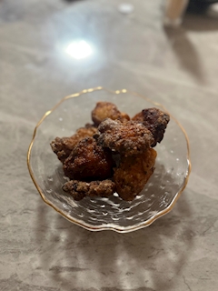 おはよ〜 昨日作った唐揚げ🍗♡ 焦げた😂 美味しかったからまあいっか きょーからいます💜