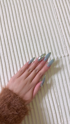 おはよう〜🙂 セルフネイルしたよ!💅✨ 久々にこんなに長くした!笑 生活に支障でまくりです笑 可愛いは我慢だよね?🥹🥹