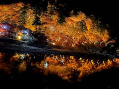 こんばんは🌙* :゚ 昨日初の香嵐渓行ってきた🍁 ライトアップ綺麗やった🩵 屋台飯だーいすき🌟 いっぱい食べれて幸🦑 今日からまたお願いします🤍